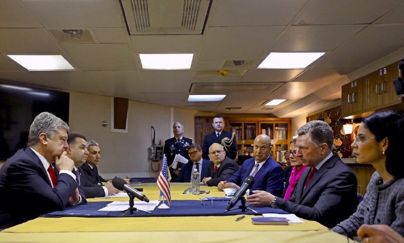 Президент Петр Порошенко в Одессе посетил эсминец «Дональд Кук» ВМС США, на котором провел встречу со Специальным представителем США в Украине Куртом Волкером.