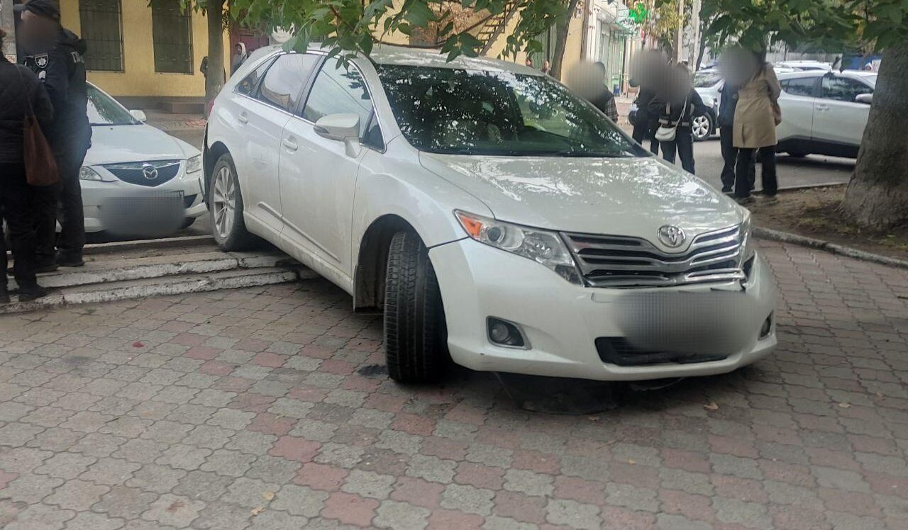 Варто додати, що бордюр, який розділяє парковку та тротуар, досить високий, і в результаті аварії “Тойота” отримала серйозні ушкодження.