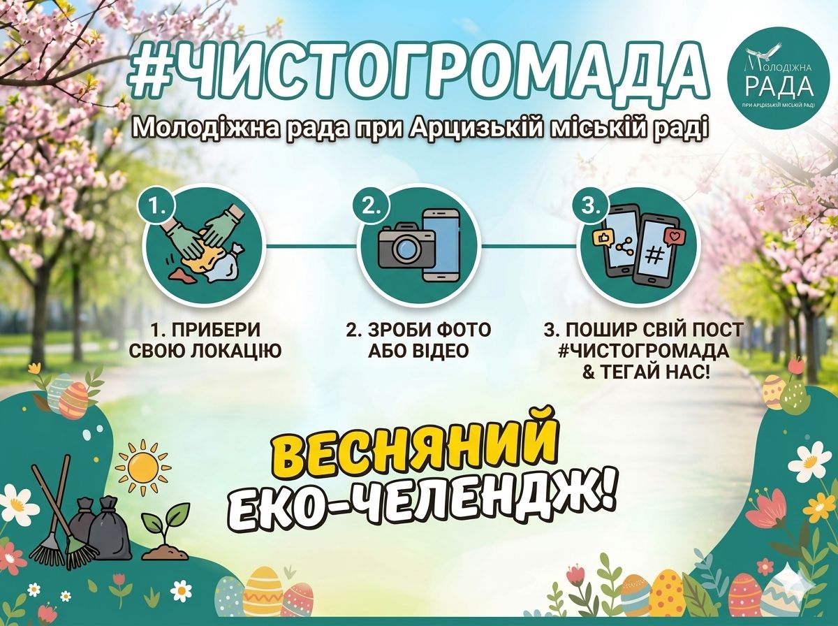 Молодіжна рада при Арцизькій міській раді оголошує запуск еко-челенджу «ЧистоГромада». Захід закликає мешканців громади об’єднатися напередодні Великодніх свят та долучитися до прибирання вулиць та скверів. Про це повідомляє Арцизька громада, передає “Бессарабія INFORM”.